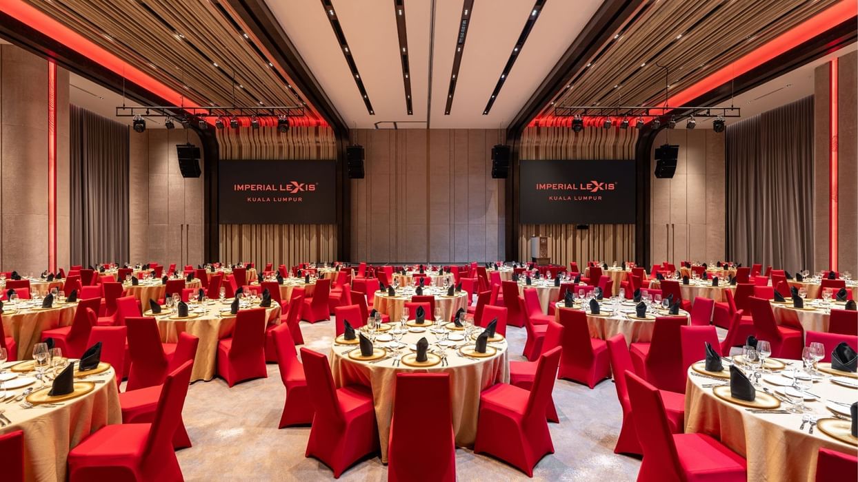 Our Imperial Lexis Ballroom spans 557 square metres and can accommodate up to 340 guests for sit-down banquets, offering a captivating setting for memorable events.